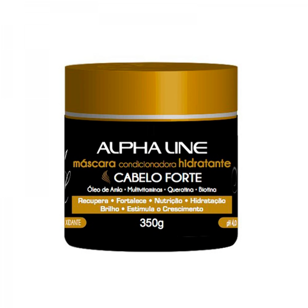 Modo de usar: Aplique a Alpha Line Máscara Condicionadora Hidratante CABELO FORTE por toda a extensão dos fios. Deixe agir por 5 minutos. Enxágue bem.